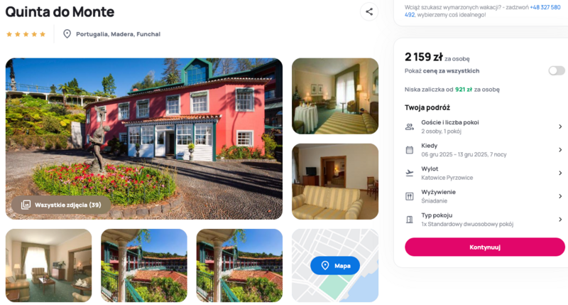 To świetna okazja, by na chwilę oderwać się od codzienności i zanurzyć w spokojnym rytmie Madery. Funchal, główne miasto wyspy, kusi nie tylko łagodnym klimatem, ale i mnóstwem miejsc wartych odkrycia. W trakcie pobytu można liczyć na wygodny nocleg w hotelu Quinta do Monte, który położony jest w jednym z bardziej urokliwych zakątków – z widokiem na zielone wzgórza i ocean. Sam hotel ma wszystko, czego potrzeba do beztroskiego wypoczynku: baseny, restaurację z lokalnymi przysmakami i atmosferę sprzyjającą relaksowi.