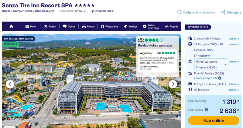 Oferty wycieczek dostarczone przez naszych partnerów nie są aktualizowane w czasie rzeczywistym, w związku z czym ceny i dostępność ofert mogą się nieznacznie różnić od aktualnych. Dokładamy wszelkich starań aby rozbieżności były jak najmniejsze.
