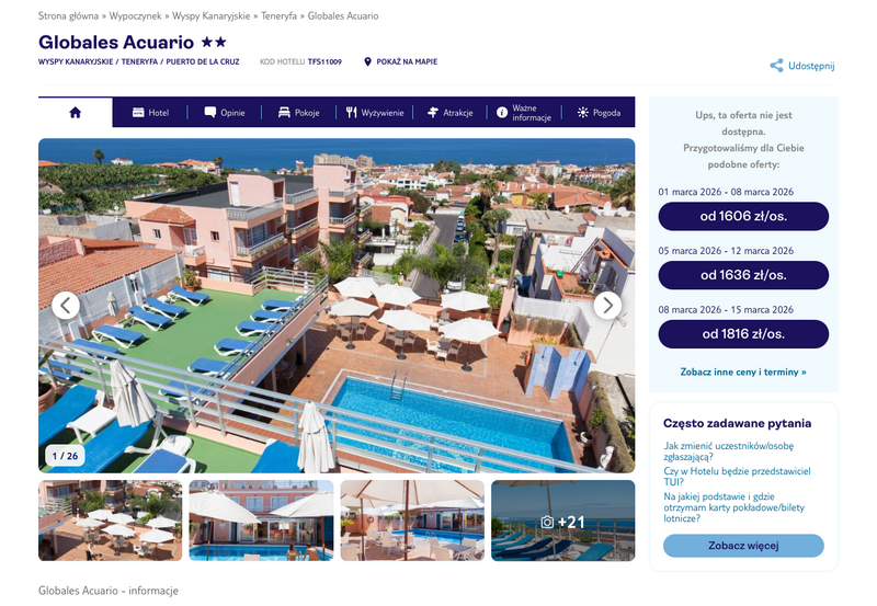 Oferty wycieczek dostarczone przez naszych partnerów nie są aktualizowane w czasie rzeczywistym, w związku z czym ceny i dostępność ofert mogą się nieznacznie różnić od aktualnych. Dokładamy wszelkich starań aby rozbieżności były jak najmniejsze.