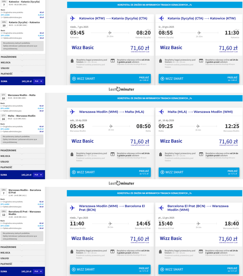 Hiszpania, Katania, Malta, Włochy, Katowice, Warszawa