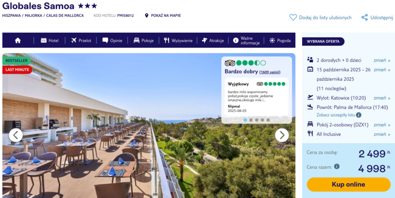 Cała wycieczka, z wygodnym przelotem i pobytem w komfortowym hotelu, prezentuje się bardzo atrakcyjnie – to propozycja, która sprawdzi się zarówno jako rodzinne wczasy, jak i spokojny wypoczynek we dwoje. To dobry moment, żeby zaplanować beztroskie dni na Majorce i nacieszyć się hiszpańskim słońcem.