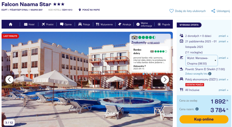 Wyjazd do Falcon Naama Star to dobra propozycja zarówno na rodzinne wczasy, jak i spontaniczny wypad. Komfortowe warunki i ciepły klimat sprawiają, że z Egiptu trudno wrócić bez uśmiechu i pięknych wspomnień.