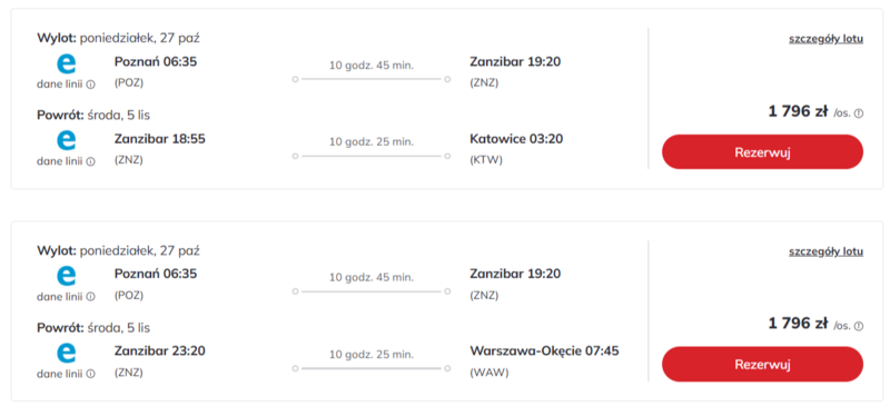 Tanie loty z dużym bagażem rejestrowanym na Zanzibar za 1796 zł