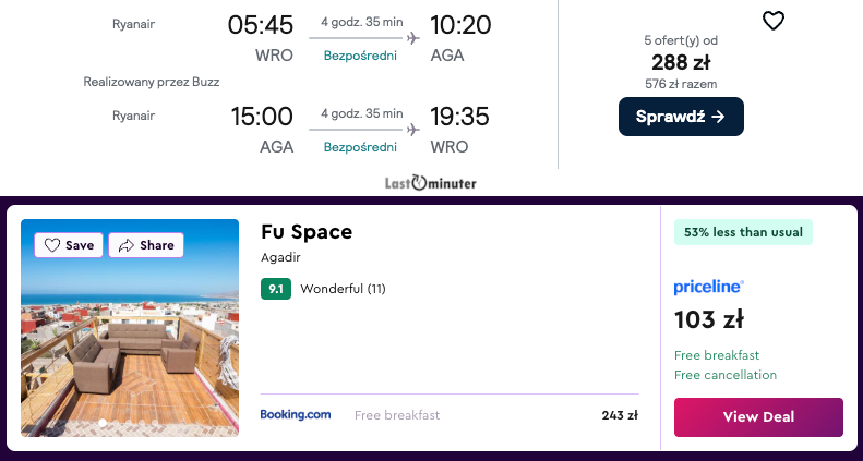 Wylatując z Wrocławia, możesz już po niespełna pięciu godzinach cieszyć się marokańskim słońcem w Agadirze. Bezpośredni lot bez przesiadek to spore ułatwienie, zwłaszcza jeśli zależy Ci na wygodnej i szybkiej podróży.