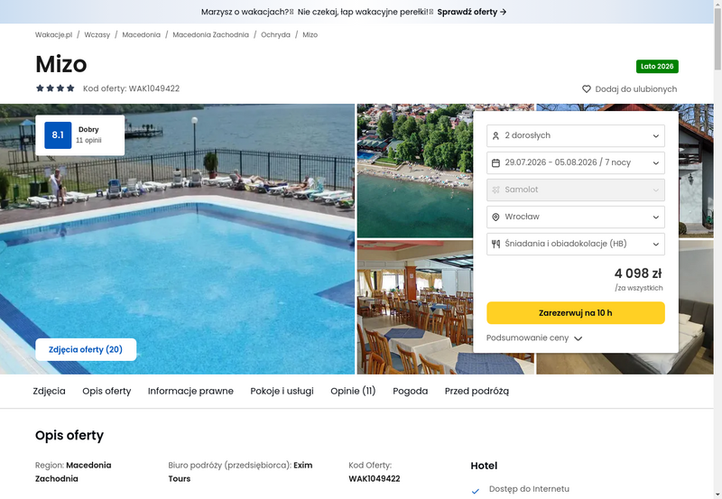 Aktualizacja: Jezioro Ochrydzkie w wakacje: 4* hotel z wyżywieniem przy plaży od 1969 zł
