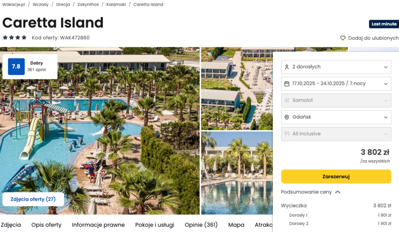 Warto też wybrać się na krótki spacer do pobliskiego centrum Kalamaki, gdzie można zajrzeć do lokalnych restauracji, spróbować greckich smaków albo po prostu poczuć klimat wyspy. Październik na Zakintos potrafi zaskoczyć przyjemnymi temperaturami i dużą dawką słońca.