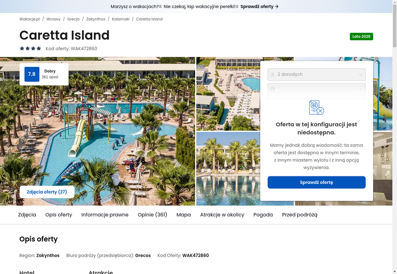Aktualizacja: Grecja (Zakintos) last minute: Komfortowy 4* Caretta Island z all inclusive od 1901 zł