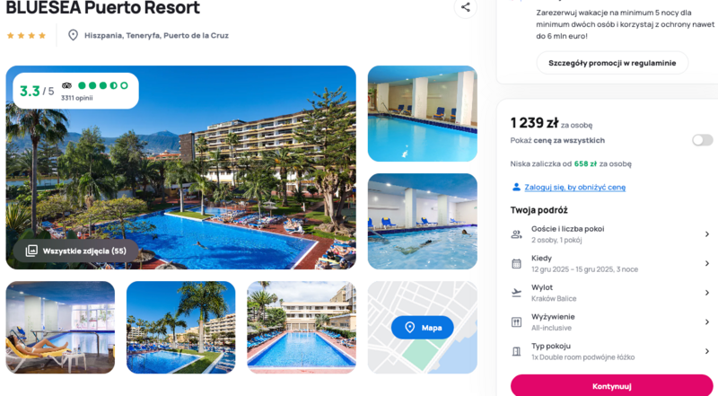 W czasie późnej jesieni zaplanowany jest wylot z Krakowa lub Berlina do słonecznej Hiszpanii. W planie pobytu znalazł się hotel BLUESEA Puerto Resort, który oferuje wysoki standard oraz wygodną opcję all inclusive – idealną dla osób ceniących sobie komfort i beztroski wypoczynek.
