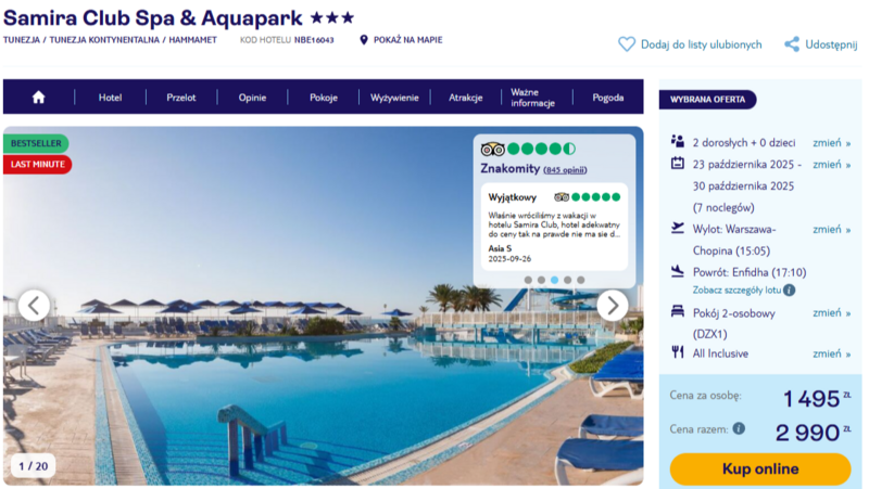 Jeśli więc szukasz opcji wypoczynku w ciekawej lokalizacji, z dostępem do atrakcji i w rozsądnej cenie, warto rozważyć ten kierunek. Samira Club to miejsce z potencjałem – nie wszystko jest perfekcyjne, ale całość tworzy przyjazną przestrzeń do wypoczynku i zwiedzania okolic Tunisu i Hammametu.