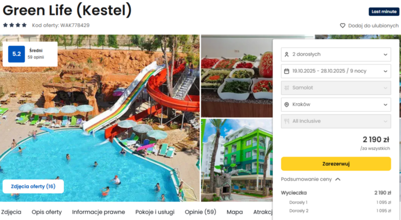 Taki wyjazd – w dobrej cenie, z pełnym wyżywieniem i w świetnym standardzie – to dobra okazja, by oderwać się od codziennych spraw, odpocząć i naładować baterie. Riwiera Turecka nie bez powodu cieszy się taką popularnością – kto raz spróbuje, często wraca po więcej.