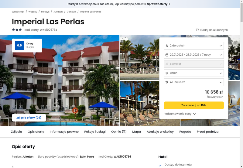 Aktualizacja: Wypoczynek w Meksyku: 3* hotel z all inclusive przy plaży od 4625 zł (dużo terminów)