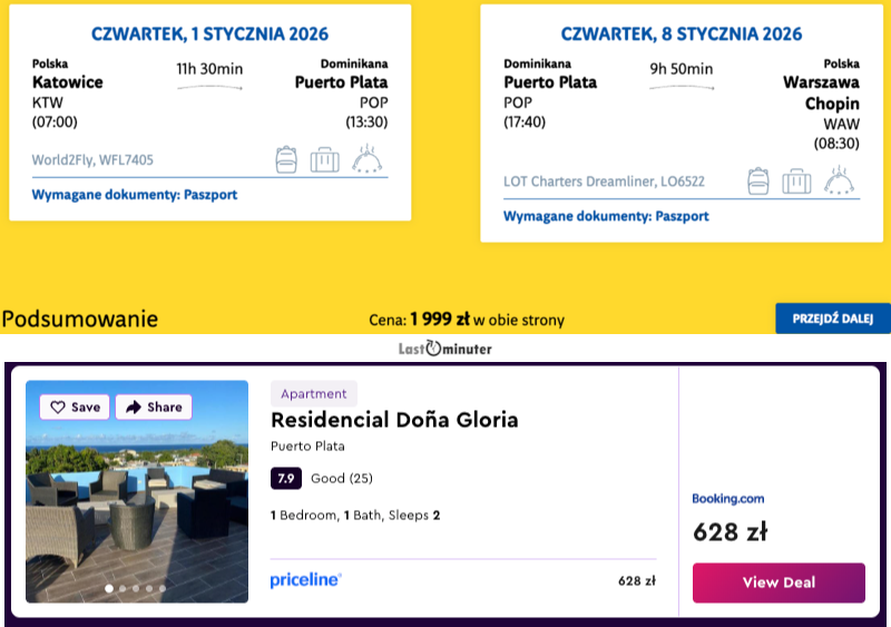Misją Lastminuter.pl jest przedstawienie Ci najlepszych zdaniem naszej redakcji okazji na podróże. Opisujemy oferty znalezione przez nas w internecie i wskazujemy adresy internetowe, pod którymi samodzielnie możesz wykupić podróż lub elementy podróży. Ceny w artykułach są aktualne w chwili publikacji. Możemy otrzymywać wynagrodzenie od partnerów handlowych, do których Cię przekierowujemy. Nie ma to wpływu na cenę Twojej wycieczki. Powielanie publikacji zabronione.