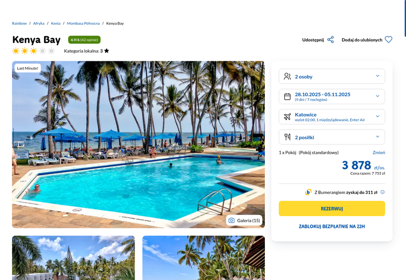 Aktualizacja: Egzotyczny wypoczynek w Kenii: 3* hotel z wyżywieniem za 3678 zł