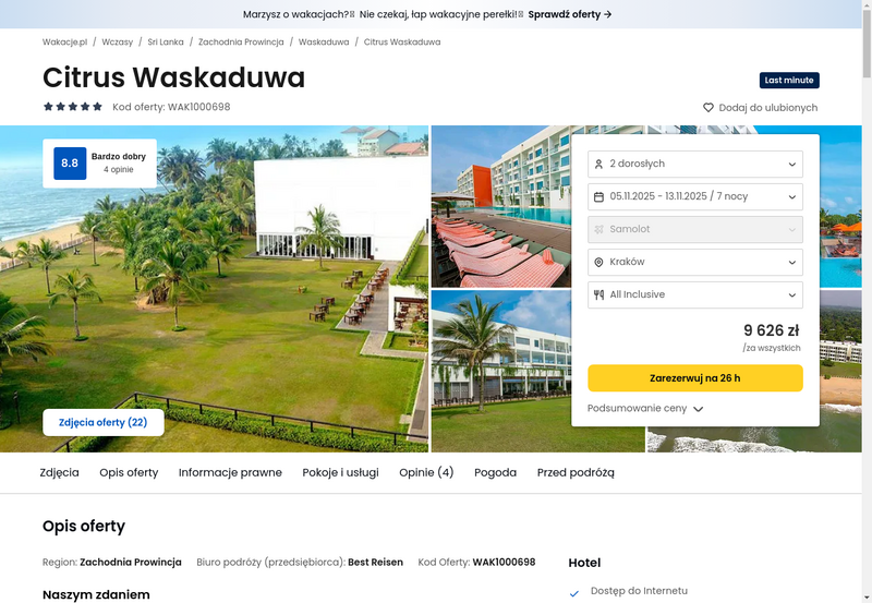 Misją Lastminuter.pl jest przedstawienie Ci najlepszych zdaniem naszej redakcji okazji na podróże. Opisujemy oferty znalezione przez nas w internecie i wskazujemy adresy internetowe, pod którymi samodzielnie możesz wykupić podróż lub elementy podróży. Ceny w artykułach są aktualne w chwili publikacji. Możemy otrzymywać wynagrodzenie od partnerów handlowych, do których Cię przekierowujemy. Nie ma to wpływu na cenę Twojej wycieczki. Powielanie publikacji zabronione.