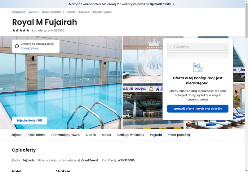 Niedostępność oferty została udokumentowana zrzutem ekranu.