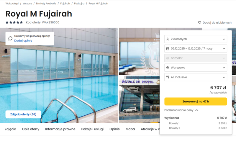Zamień chłodne dni na arabskie słońce: Fujairah, 5* hotel z all inclusive od 3370 zł