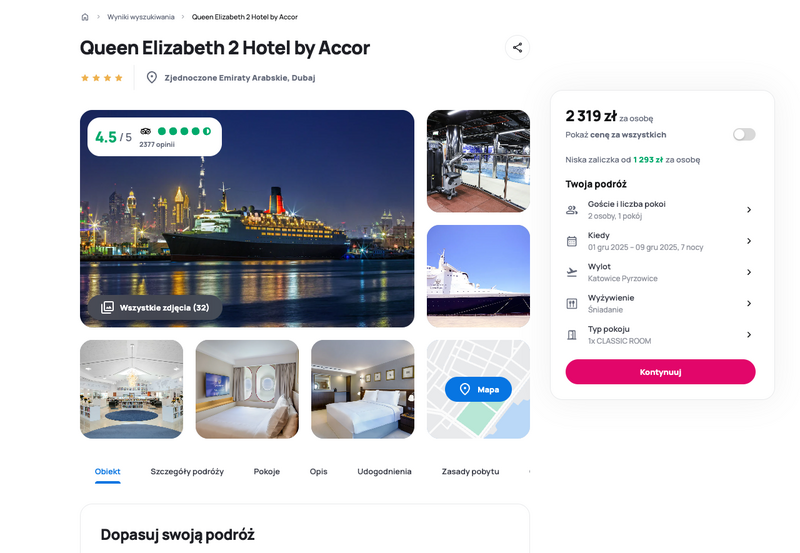 Aktualizacja: Niepowtarzalny pobyt na statku w sercu ZEA: 4* hotel ze śniadaniami za 1849 zł