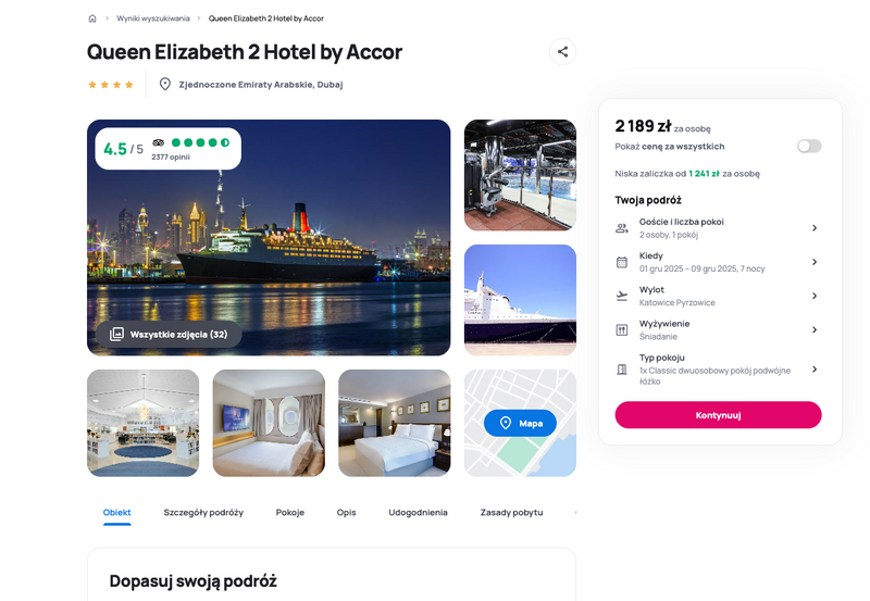 Aktualizacja: Niepowtarzalny pobyt na statku w sercu ZEA: 4* hotel ze śniadaniami za 1849 zł