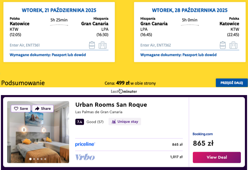 Misją Lastminuter.pl jest przedstawienie Ci najlepszych zdaniem naszej redakcji okazji na podróże. Opisujemy oferty znalezione przez nas w internecie i wskazujemy adresy internetowe, pod którymi samodzielnie możesz wykupić podróż lub elementy podróży. Ceny w artykułach są aktualne w chwili publikacji. Możemy otrzymywać wynagrodzenie od partnerów handlowych, do których Cię przekierowujemy. Nie ma to wpływu na cenę Twojej wycieczki. Powielanie publikacji zabronione.