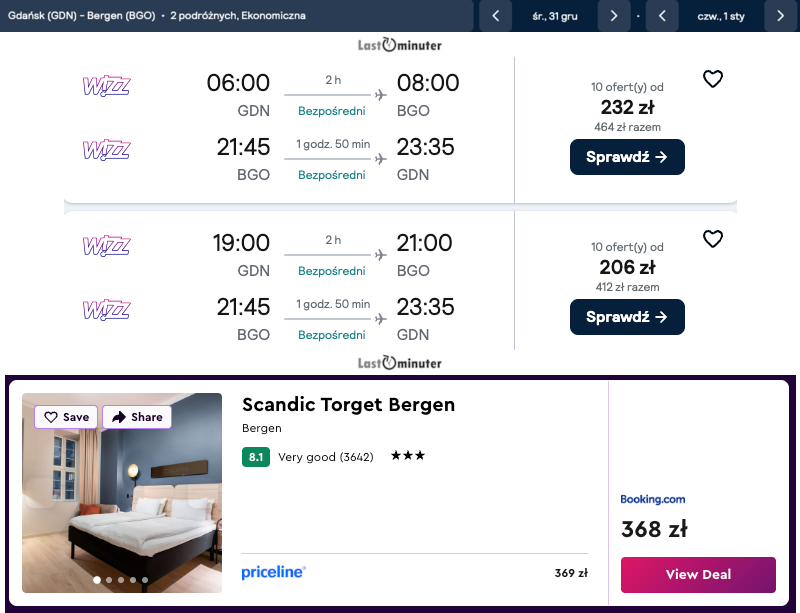 Cena biletów jest naprawdę przyjemna dla portfela, więc taka podróż nie musi oznaczać dużych wydatków. To dobra szansa, żeby choć na chwilę oderwać się od codzienności, poznać ciekawe miejsce i spróbować czegoś nowego. Bergen z pewnością ma sporo do zaoferowania – wystarczy się odważyć i ruszyć w drogę.