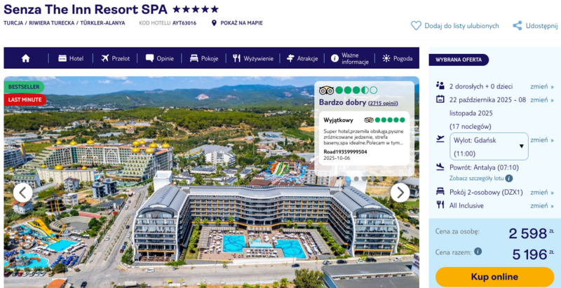 Jeśli chodzi o pogodę – trudno o lepszy czas na wypoczynek. W trakcie pobytu temperatury sięgają około 24°C, a słońce towarzyszy większości dni. To świetna okazja, by cieszyć się plażą, spacerami czy wycieczkami po okolicy. Senza The Inn Resort SPA to również dobre miejsce na rodzinne wczasy – szczególnie doceniane są przyjazna obsługa i różnorodne dania serwowane w restauracjach.