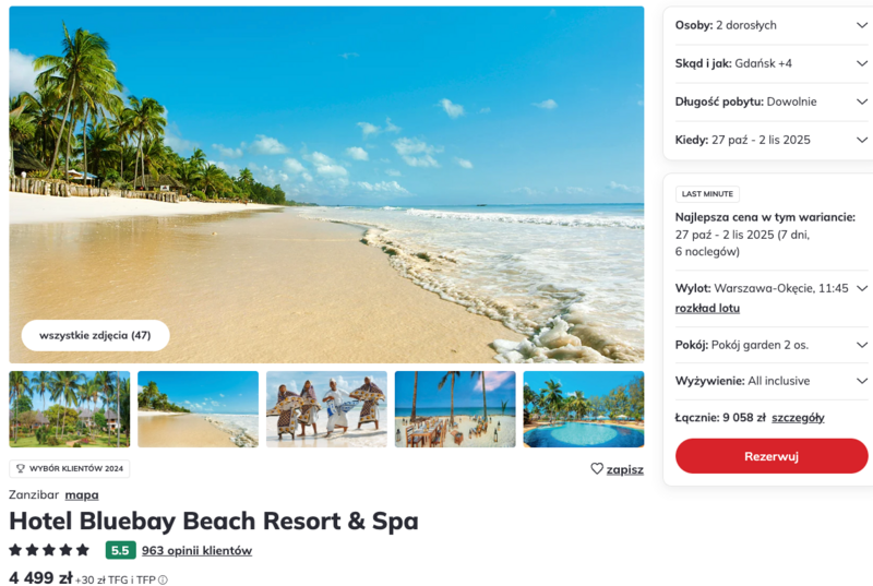Misją Lastminuter.pl jest przedstawienie Ci najlepszych zdaniem naszej redakcji okazji na podróże. Opisujemy oferty znalezione przez nas w internecie i wskazujemy adresy internetowe, pod którymi samodzielnie możesz wykupić podróż lub elementy podróży. Ceny w artykułach są aktualne w chwili publikacji. Możemy otrzymywać wynagrodzenie od partnerów handlowych, do których Cię przekierowujemy. Nie ma to wpływu na cenę Twojej wycieczki. Powielanie publikacji zabronione.