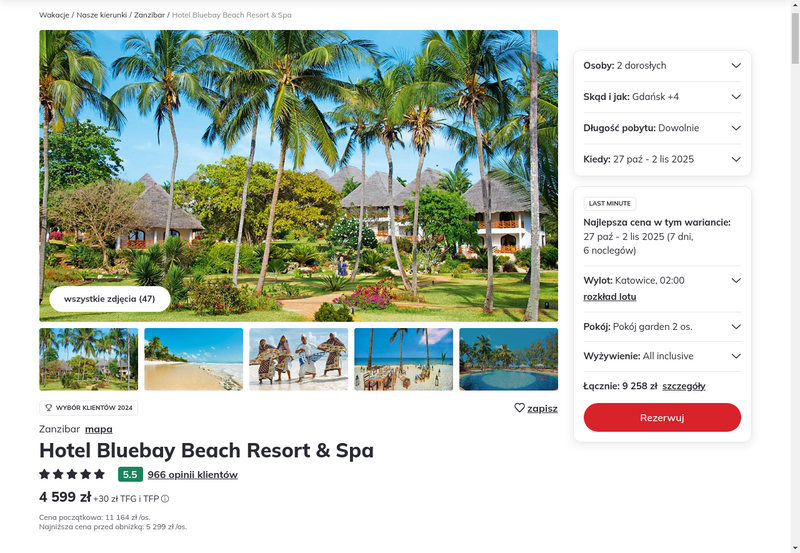 Aktualizacja: Zanzibar: Znakomity 5* hotel z all inclusive przy plaży za 4499 zł