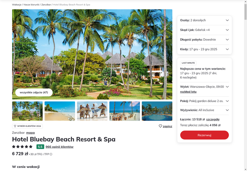 Aktualizacja: Zanzibar: Znakomity 5* hotel z all inclusive przy plaży za 4499 zł