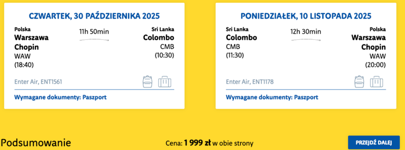 Tanie loty czarterowe z dużym bagażem do Sri Lanki za 1999 zł