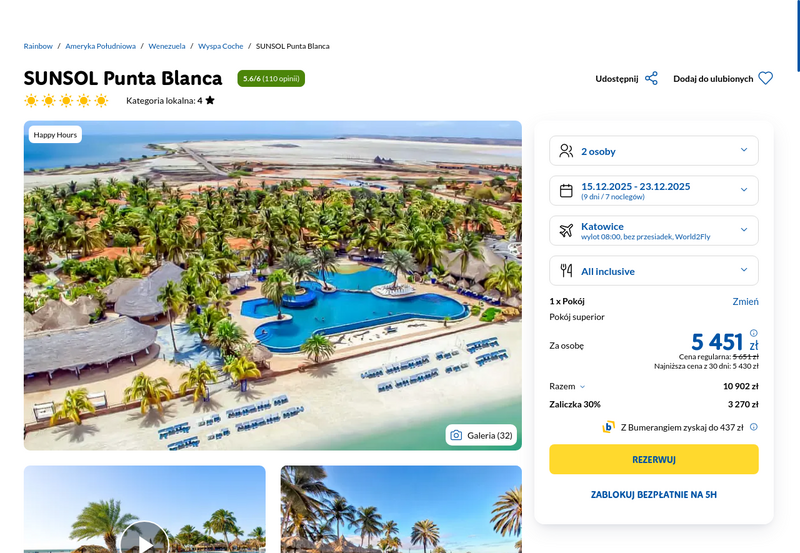 Aktualizacja: Odkryj egzotyczną Wenezuelę: 4* hotel z all inclusive za 5430 zł