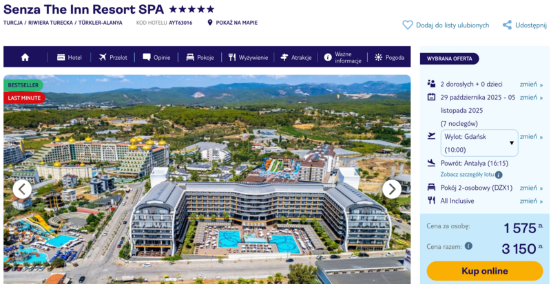 Misją Lastminuter.pl jest przedstawienie Ci najlepszych zdaniem naszej redakcji okazji na podróże. Opisujemy oferty znalezione przez nas w internecie i wskazujemy adresy internetowe, pod którymi samodzielnie możesz wykupić podróż lub elementy podróży. Ceny w artykułach są aktualne w chwili publikacji. Możemy otrzymywać wynagrodzenie od partnerów handlowych, do których Cię przekierowujemy. Nie ma to wpływu na cenę Twojej wycieczki. Powielanie publikacji zabronione.