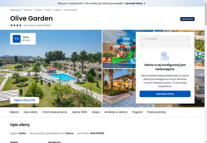 Niedostępność oferty została udokumentowana zrzutem ekranu.