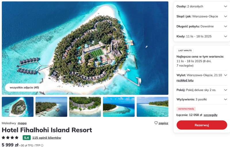 Wyprawa na Malediwy rozpoczyna się na warszawskim lotnisku Okęcie i prowadzi wprost na niewielką, rajską wyspę, gdzie czeka Hotel Fihalhohi Island Resort – położony pośrodku turkusowej tafli Oceanu Indyjskiego.