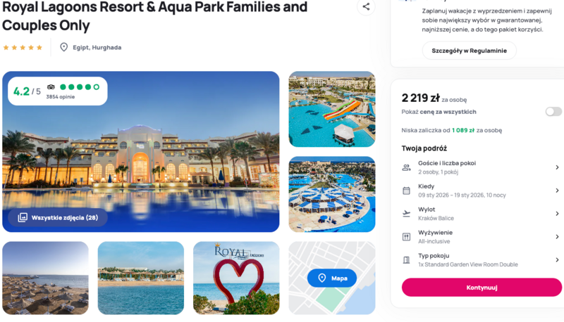Royal Lagoons Resort & Aqua Park w wersji all inclusive sprawdzi się zarówno dla rodzin, jak i par szukających relaksu. Dobrze przygotowana infrastruktura, przemyślane udogodnienia i miła obsługa sprawiają, że pobyt tutaj to naprawdę fajna opcja na wypoczynek w ciepłym klimacie. Jeśli marzy się o beztroskich dniach nad Morzem Czerwonym – ta oferta może być strzałem w dziesiątkę.