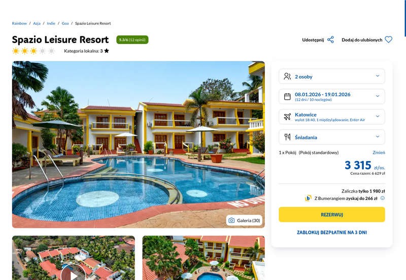 Aktualizacja: Wypoczynek w Indiach: Goa, 10 dni w 3* hotelu ze śniadaniami od 2915 zł
