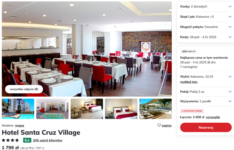 Madera last minute: Bardzo dobrze oceniany 4* hotel z wyżywieniem za 1799 zł