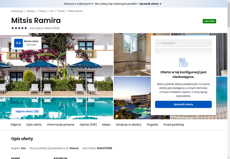 Niedostępność oferty została udokumentowana zrzutem ekranu.