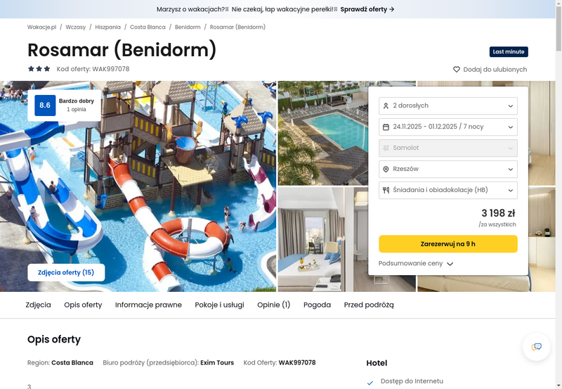 Aktualizacja: Wypoczynek na Costa Blanca: 3* hotel z wyżywieniem od 1589 zł
