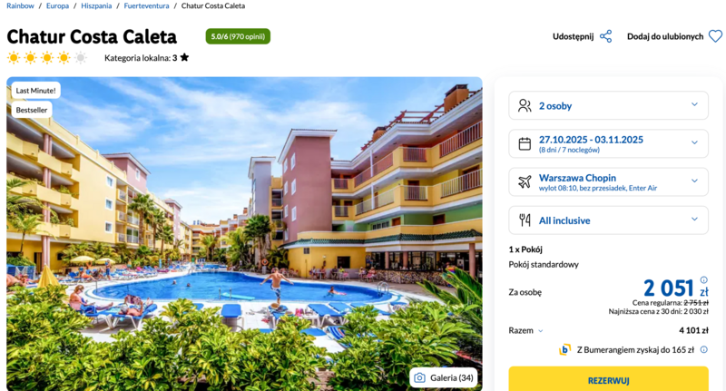 Wyspy Kanaryjskie last minute: Fuerteventura, 3* hotel z all inclusive za 2051 zł
