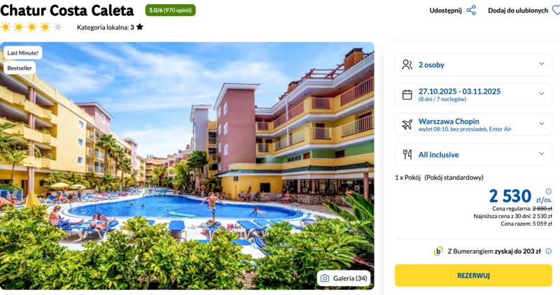 Cała propozycja to dobry wybór dla tych, którzy szukają komfortowego wypoczynku w miłym otoczeniu, z dodatkiem słońca, morza i hiszpańskiego klimatu. Jeśli do tego dodać dobre opinie i przystępną cenę, trudno nie zainteresować się tą opcją.