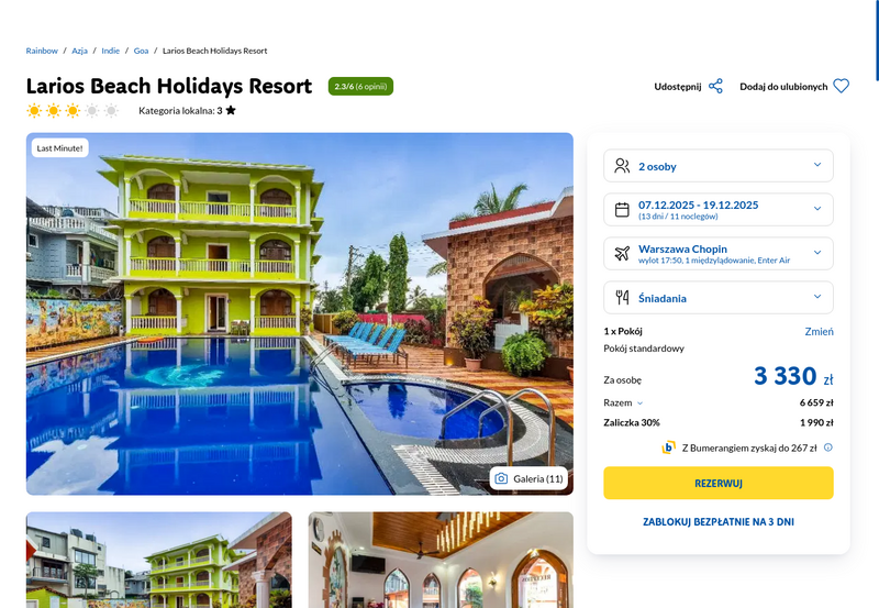 Aktualizacja: Egzotyka: Indie (Goa), 11 dni w 3* hotelu ze śniadaniami za 2830 zł