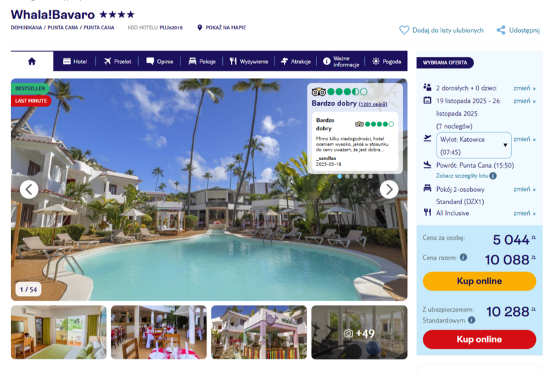 Wylot do Punta Cany z Katowic. Jest to świetna propozycja dla każdego, kto marzy o odpoczynku pod palmami. Wybierając ten kierunek, można liczyć na sporą dawkę słońca, piękne plaże i tropikalny klimat, który momentalnie pozwala zapomnieć o codziennych sprawach. Na miejscu czeka hotel Whala!Bavaro – czterogwiazdkowy obiekt z opcją all inclusive, gdzie wszystko jest pod ręką, a Ty możesz skupić się wyłącznie na relaksie.