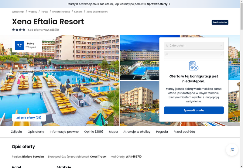 Niedostępność oferty została udokumentowana zrzutem ekranu.