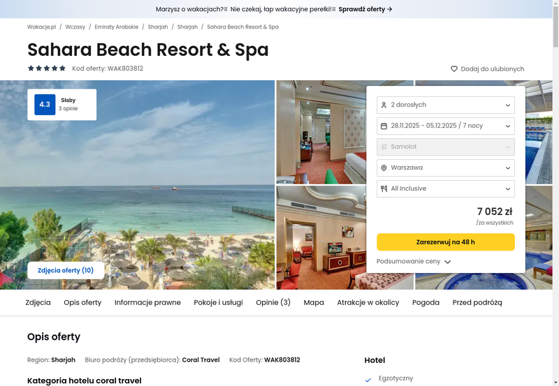 Aktualizacja: Zjednoczone Emiraty Arabskie: 5* hotel z all inclusive przy plaży od 2952 zł