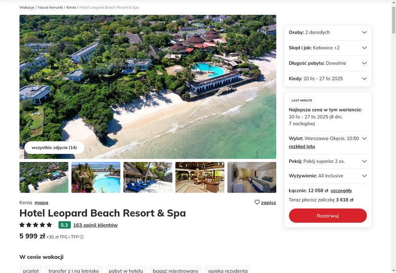 Aktualizacja: Okazja: Kenia, 5* hotel z all inclusive przy plaży za 3799 zł!