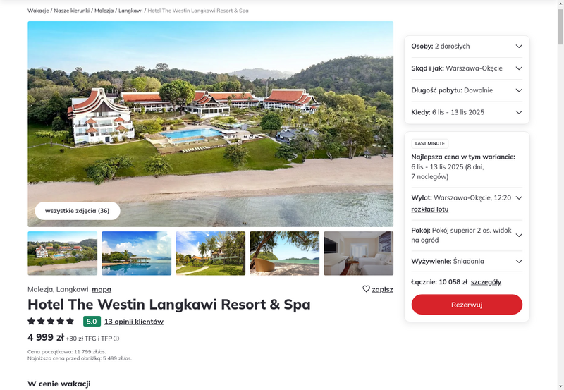 Aktualizacja: Malezja: Luksusowy 5* The Westin Langkawi Resort & Spa ze śniadaniami za 3099 zł