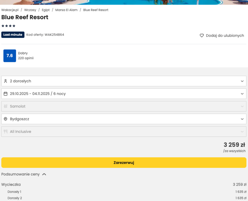 Wylot na wczasy zaplanowany jest z Bydgoszczy do Marsa Alam w Egipcie – to świetna szansa, żeby choć na chwilę oderwać się od codzienności i zanurzyć w zupełnie inny klimat.