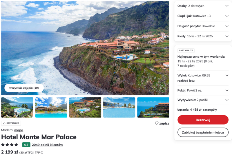 Oferta wyjazdu prezentuje się korzystnie, zwłaszcza w porównaniu do jakości pobytu, jaką zapewnia Hotel Monte Mar Palace. Bliskość przyrodniczych i turystycznych atrakcji, położenie tuż przy oceanie i wygodna infrastruktura sprawiają, że łatwo zapomnieć o codzienności i po prostu chłonąć uroki wyspy.