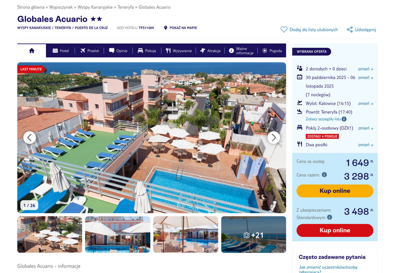 Aktualizacja: Teneryfa last minute: Hotel z wyżywieniem i basenem na dachu za 1619 zł