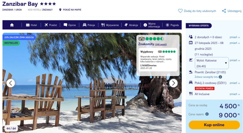 Misją Lastminuter.pl jest przedstawienie Ci najlepszych zdaniem naszej redakcji okazji na podróże. Opisujemy oferty znalezione przez nas w internecie i wskazujemy adresy internetowe, pod którymi samodzielnie możesz wykupić podróż lub elementy podróży. Ceny w artykułach są aktualne w chwili publikacji. Możemy otrzymywać wynagrodzenie od partnerów handlowych, do których Cię przekierowujemy. Nie ma to wpływu na cenę Twojej wycieczki. Powielanie publikacji zabronione.